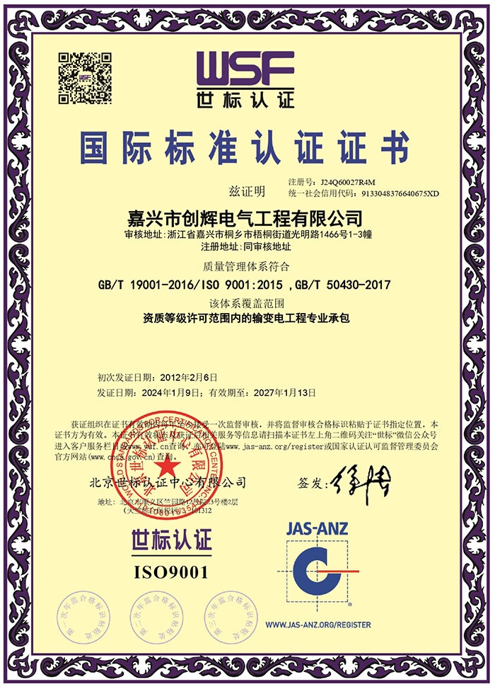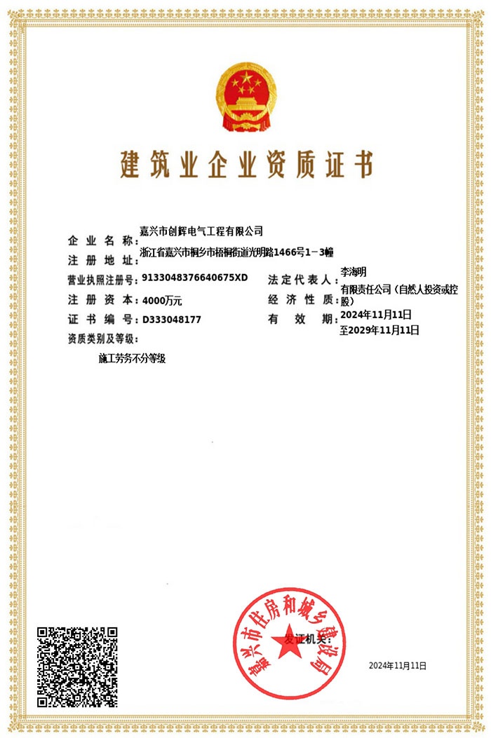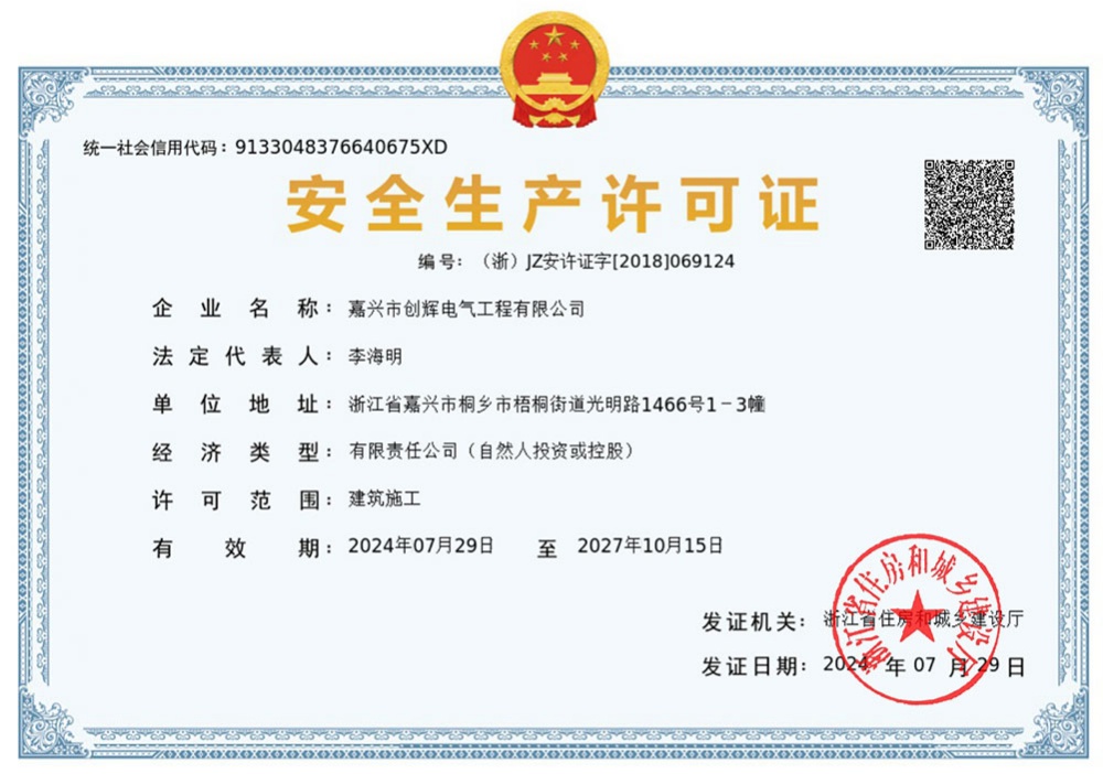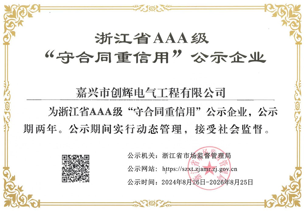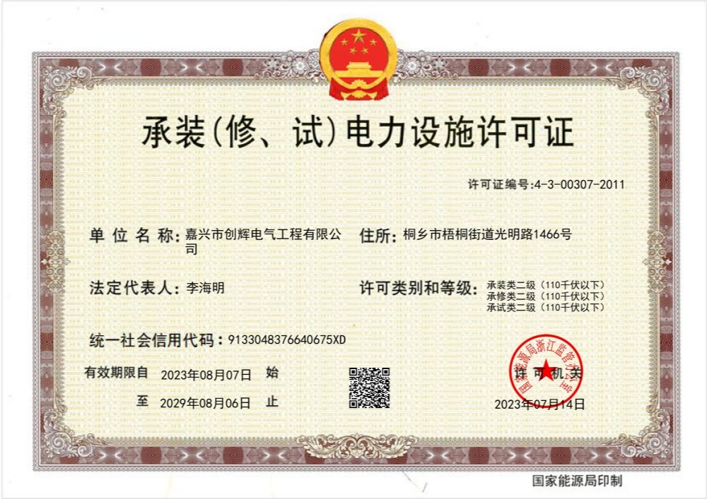 嘉興市創(chuàng)輝電氣工程有限公司,總部坐落于浙江桐鄉(xiāng)經(jīng)濟(jì)開發(fā)區(qū),公司成立于2004年,是一家承接高、低壓輸變電工程施工安裝、維修的企業(yè)。公司下設(shè)人事行政部、預(yù)結(jié)算部、采購(gòu)部、財(cái)務(wù)部、營(yíng)銷部和工程部等,其中工程部根據(jù)具體作業(yè)內(nèi)容分設(shè):變電項(xiàng)目部(12個(gè)班組)、線路項(xiàng)目部(6個(gè)班組)?,F(xiàn)有員工500余人,其中擁有一級(jí)建造師3名,二級(jí)建造師15名,高級(jí)工程師1名,工程師36名,助理工程師52名,高壓電工240余名。目前我公司已具備電力工程總承包貳級(jí)資質(zhì),輸變電工程專業(yè)承包貳級(jí)資質(zhì),城市及道路照明工程專業(yè)承包貳級(jí)資質(zhì),承裝(修、試)電力設(shè)施許可二級(jí)資質(zhì),建筑施工安全生產(chǎn)許可,是浙江省高新技術(shù)企業(yè)、省AAA級(jí)“守合同重信用”企業(yè)。